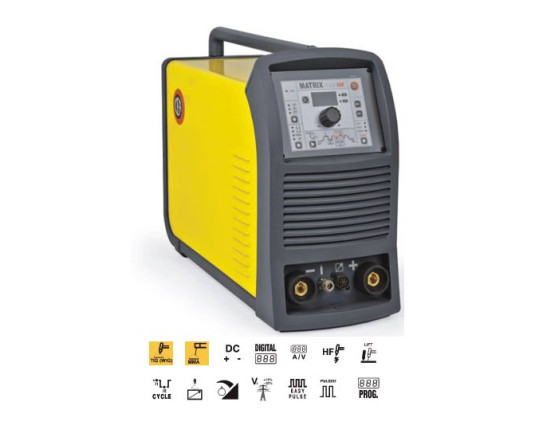 Na osnovi najsodobnejše IGBT tehnologije je MATRIX 420 HF z visoko frekvenčnim vžigom obloka zelo vzdržljiv in varčen aparat. Z inovativno digitalno ploščo zagotavlja popoln nadzor nad varilnimi parametri. Standardno je opremljen s pulznim načinom varjenja z razpoložljivo možnostjo lahkega ali super hitrega pulznega načina, kar omogoča boljši nadzor loka in manjšo deformacijo materiala. Ponuja tudi funkcijo „CYCLE“, ki omogoča s preprostim pritiskom na sprožilec nenehno preklapljanje med dvema predhodno izbranima vrednostima toka. Ta funkcija je najprimernejša za varjenje profilov različnih debelin, ki zahtevajo stalno spreminjanje toka.