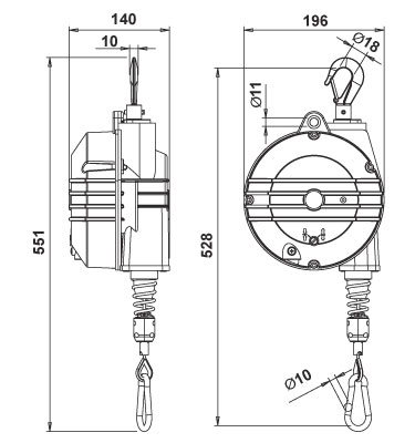 Balanser naredi orodja skoraj breztežna, kar zmanjša utrujenost operaterja ter izboljša varnost in ergonomijo. Ko se orodje premakne, se kabel iz nerjavečega jekla gladko razširi in umakne iz aluminijastega ohišja, kar zagotavlja popoln obseg gibanja. Nastavitev napetosti je enostavna in natančna.